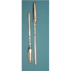 A George III fancy back silver marrow scoop, 1777 and a similar plainer scoop, 1782 £250-300