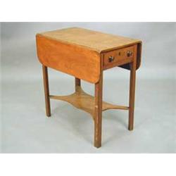 A George III mahogany Pembroke table, with a single drawer and shaped stretcheron chamfered legs. 28" (71cm) wide Est.400/600