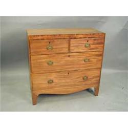 A George III mahogany chest of two short and two long drawers, raised on shapedfeet. 35 1/2" (90cm) wide Est.300/500