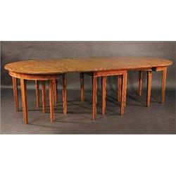 A George III mahogany dining table, the D-end rectangular top with a central drop flap section and two leaf insertions above a plain frieze raised on eighteen square tapering boxwood strung legs, stamped Gillows, Lancaster, 366cm £15,000-20,000