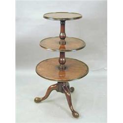 A George III mahogany dumb waiter with 3 single piece dished and graduatedshelves Est.1400/1700
