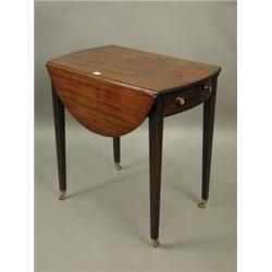 A George III oval mahogany pembroke table, with a bow drawer, on square tapering, 73cm x 46cm