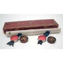 A George III scroll on vellum granting family crest to the Bushby family of Goring, 15th June 1810, with attached seals, in gilt-tooled leather case (case worn) £80-120