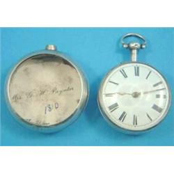 A George III silver pair cased pocket watch with Roman dial and verge movement signed S. Roberts,...