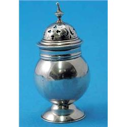 A George III silver pepper, of bulbous form with urn shape finial, maker Thomas Cumming, maker and sovereign marks only 3ins £250-300