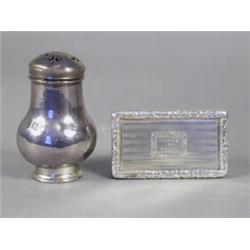 A George III silver snuff box with a gilt interior, with inscription to the base commemorating a golden wedding 1920, hallmarked Birmingham 1825, maker John Lawrence & Co, 7.5cm wide Est. 120/180