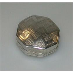 A George III silver vinaigrette, maker IT, Birmingham 1805, of octagonal shape with zigzag engraving, plain unmarked grille, 20mm £80-120