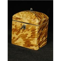 A George III tortoiseshell teacaddy with a domed lid and white metal stringing, with an interior...