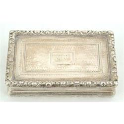 A George IV rectangular snuff box, engine turned with floral chased borders and concave reeded sides and engraved initials 'TV', Birmingham 1827 by Thomas Shaw, 6.5cm (2.5 in)