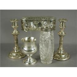 A George IV silver epaulette box with repousse decoration and a hinged lid 1830,approx 16oz, 22cm...