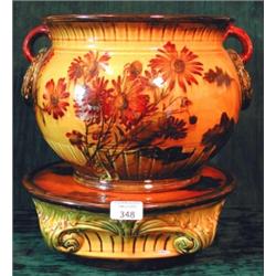 A George Jones Madrasware jardiniere on stand, height 33cm, diameter 26cm....