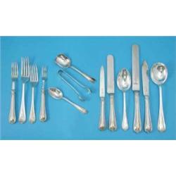 A George V 163-piece canteen of silver flatware and cutlery, shell and thread pattern, for 12, fi...