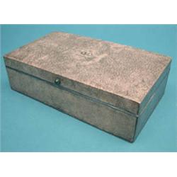 A George V silver mounted shagreen cigarette box with cabochon thumb piece, 9ins. £200-300