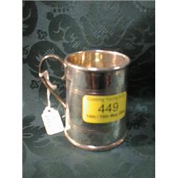 A George V silver mug, straight sided with 2 bands of reeding, scroll handle, Sheffield 1925, 3" high, 2.5ozs.