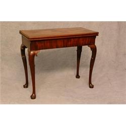 A Georgian Mahogany Card Table, the Top Enclosing Counter Wells with Green/Beige Playing Surface, on Cabriole Legs with Bun Feet. 33 1/2" Wide. Est. 400-600