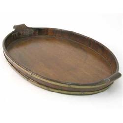 A Georgian brass bound mahogany tray, of oval form with twin handles, 23 ins £100-150