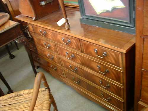 A Georgian style mahogany sideboard, H 76cms W 151cms; and a modern gilt-framed mirror. £80-120