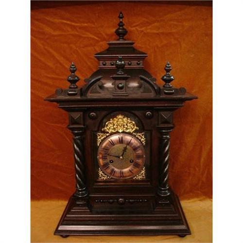 A German "Giant" Dark Oak gilt-metal table clock from period 1900-1920 made by(H.A.C.)Hamburg American Clock company.