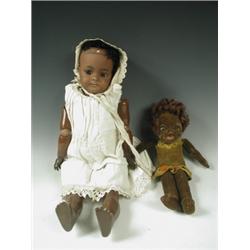 A German black bisque head doll, with composition body, the head with sleeping eyes and open mouth, stamped 'S 12 H739 DEP Germany' 55cm high, and a black felt doll, 33cm high