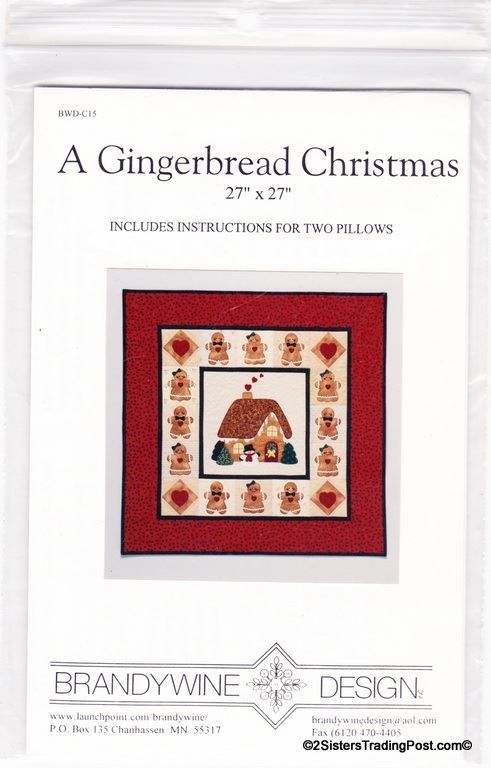 Pattern #BWD-C15 'A Gingerbread Christmas' pillow patterns from Brandywine Design. Instructions for 2-27" x 27" pillows. MSRP $6.50