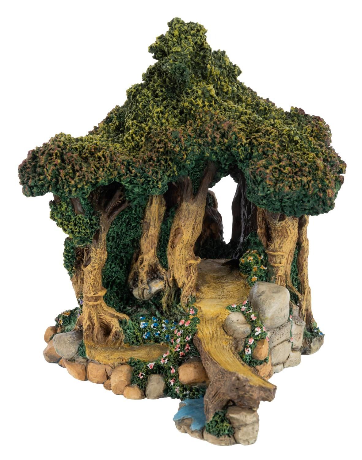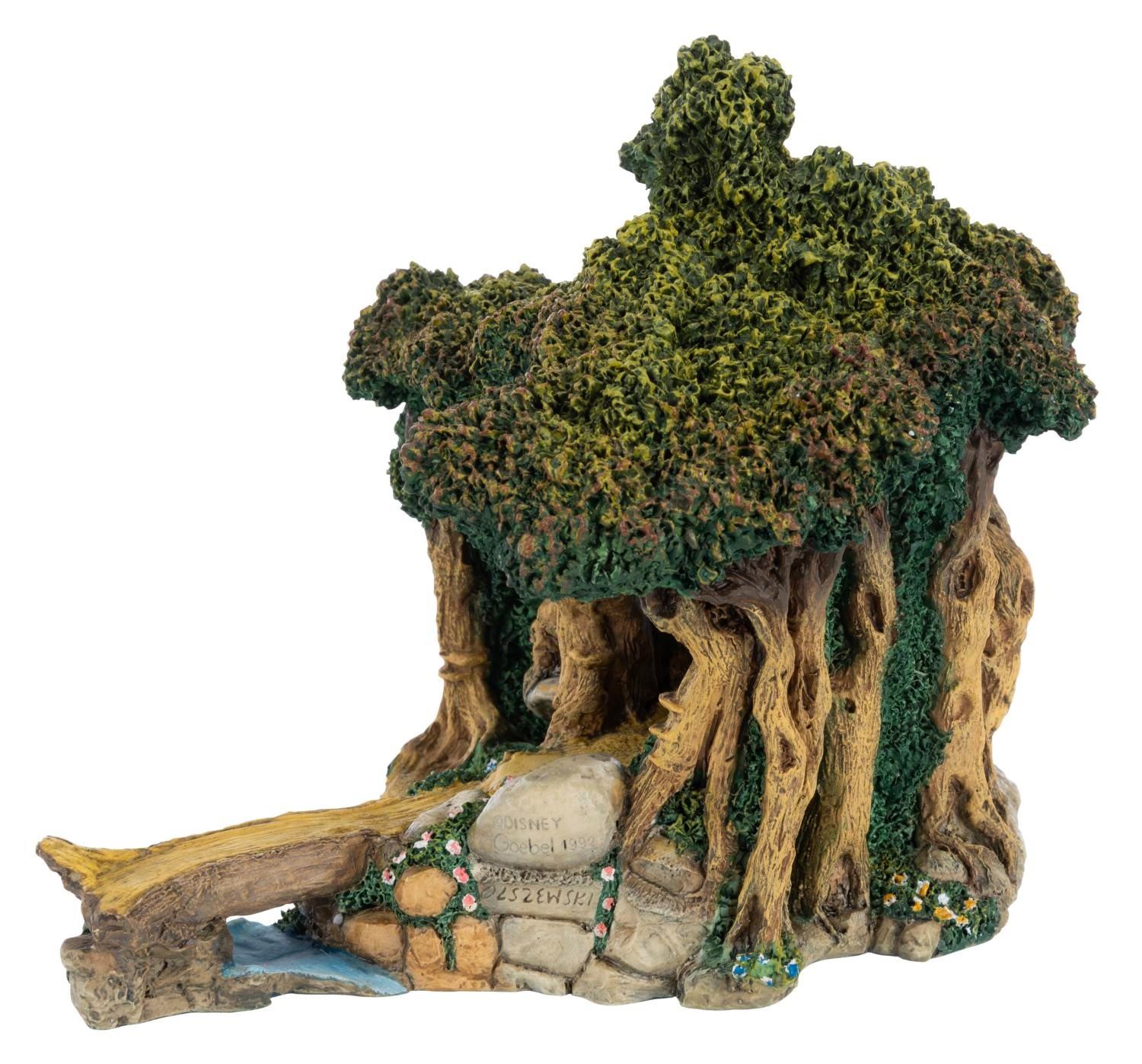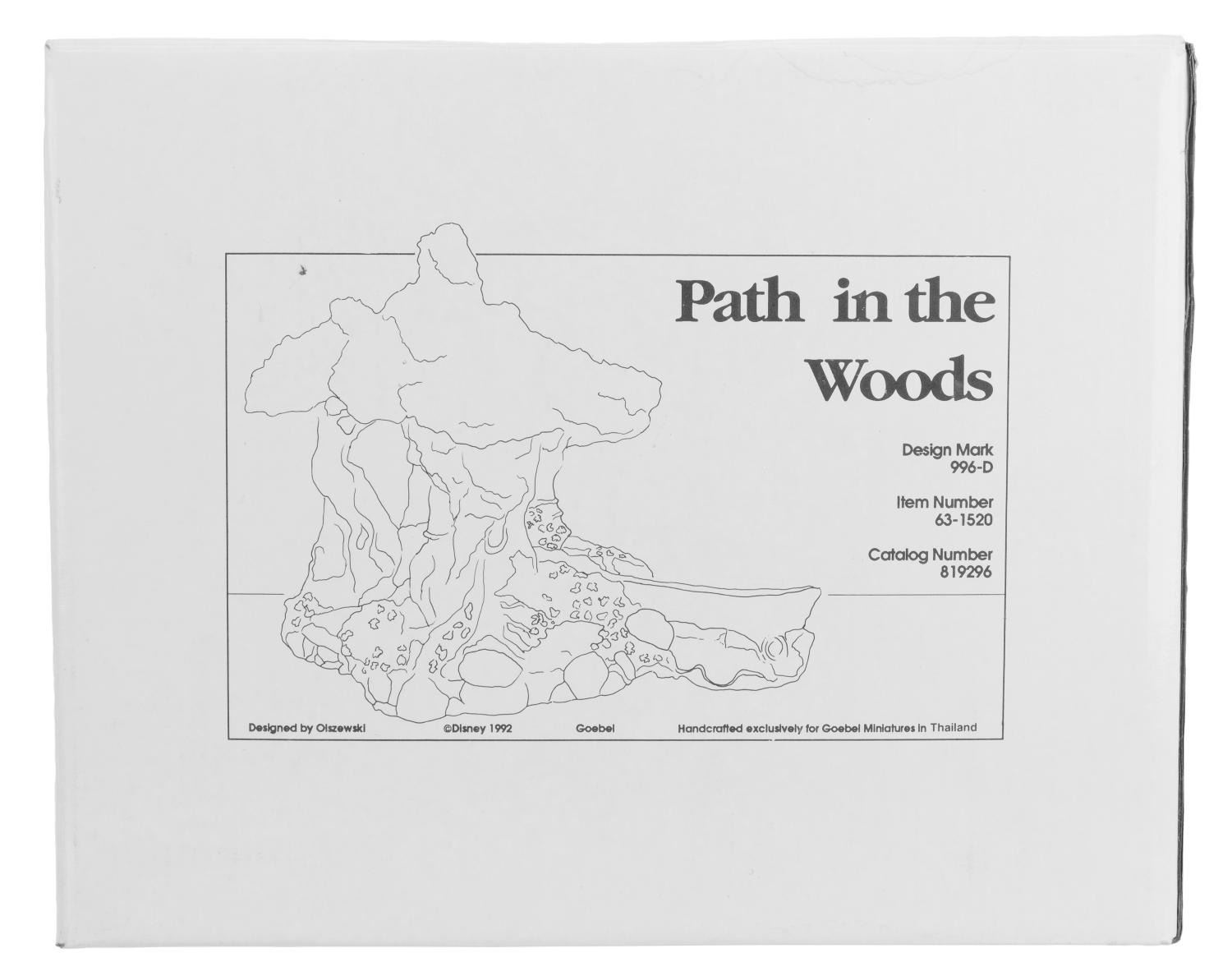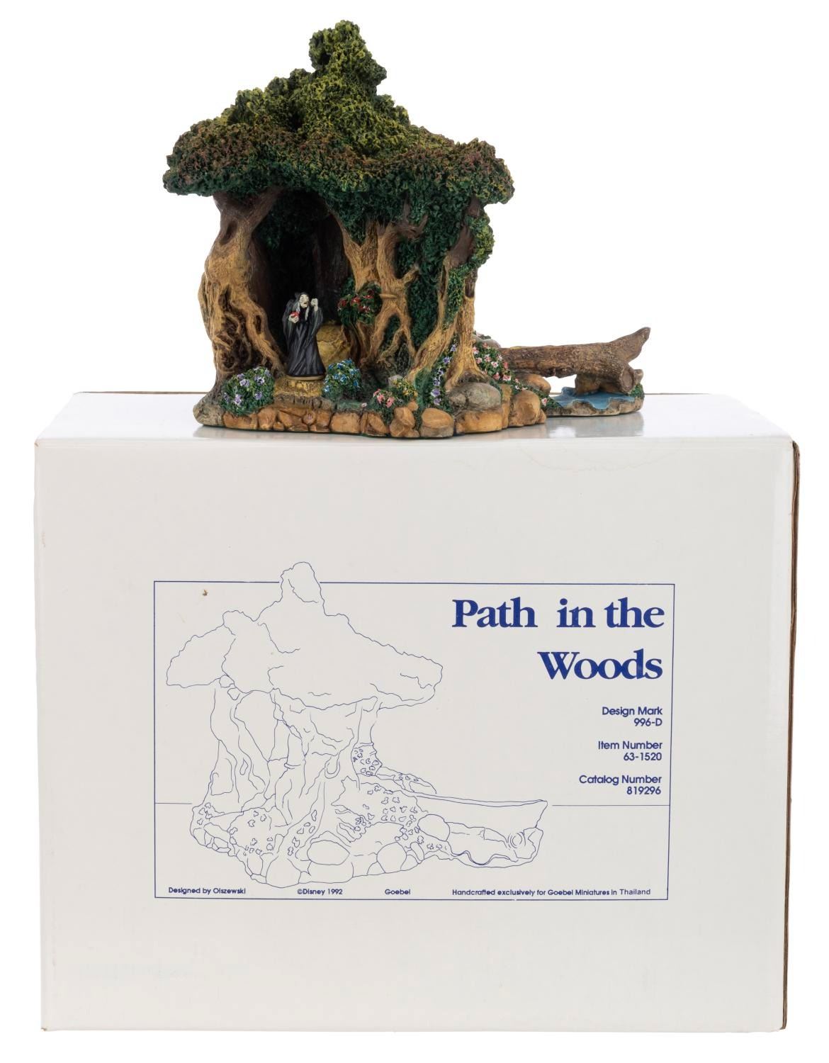 (Goebel, 1992) A "Snow White and the Seven Dwarfs" scenic figure titled Path in the Woods with an Old Hag figurine both designed by Olszewski. The hand-crafted and hand-painted resin scene measuring 6.5" x 8.5" x 6.5" high and the 1.5" metal-painted Hag figurine are in fine condition, with the scene's original box.