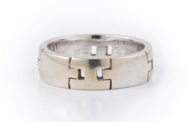 Crafted out of 18K white gold with an H design on the band; signed Hermes 52 750 37681; ring size 6; weight 6.9g.
