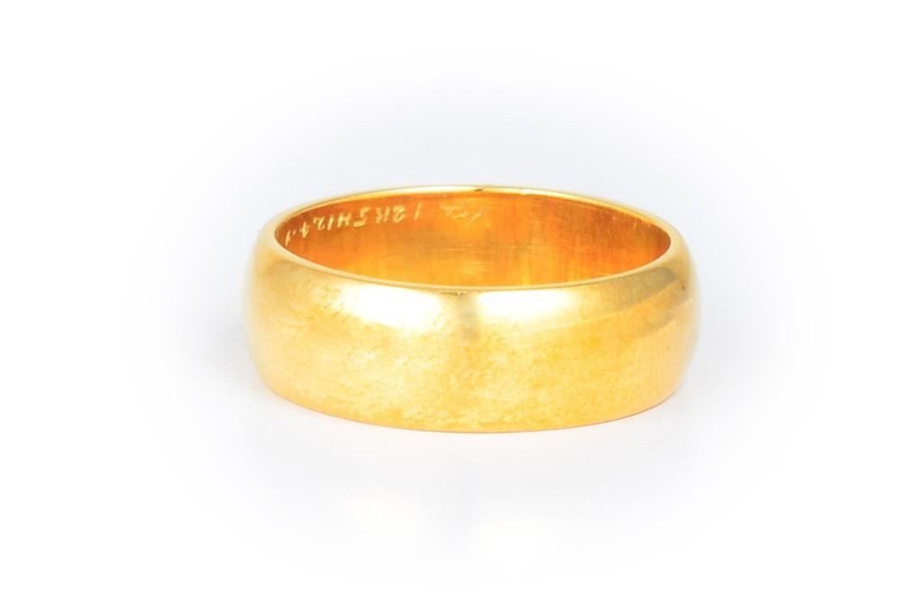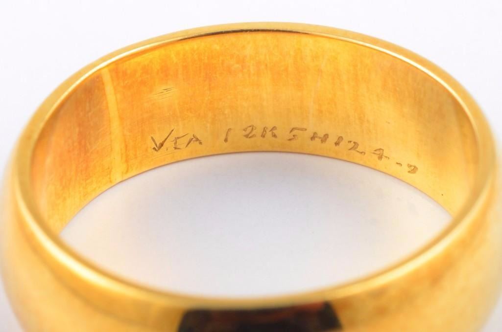 Van Cleef Arpels 18K gold band. Width measures 7mm, signed Van Cleef Arpels 12K5H124.9. Ring size 8 1/4, weight 9.6g.