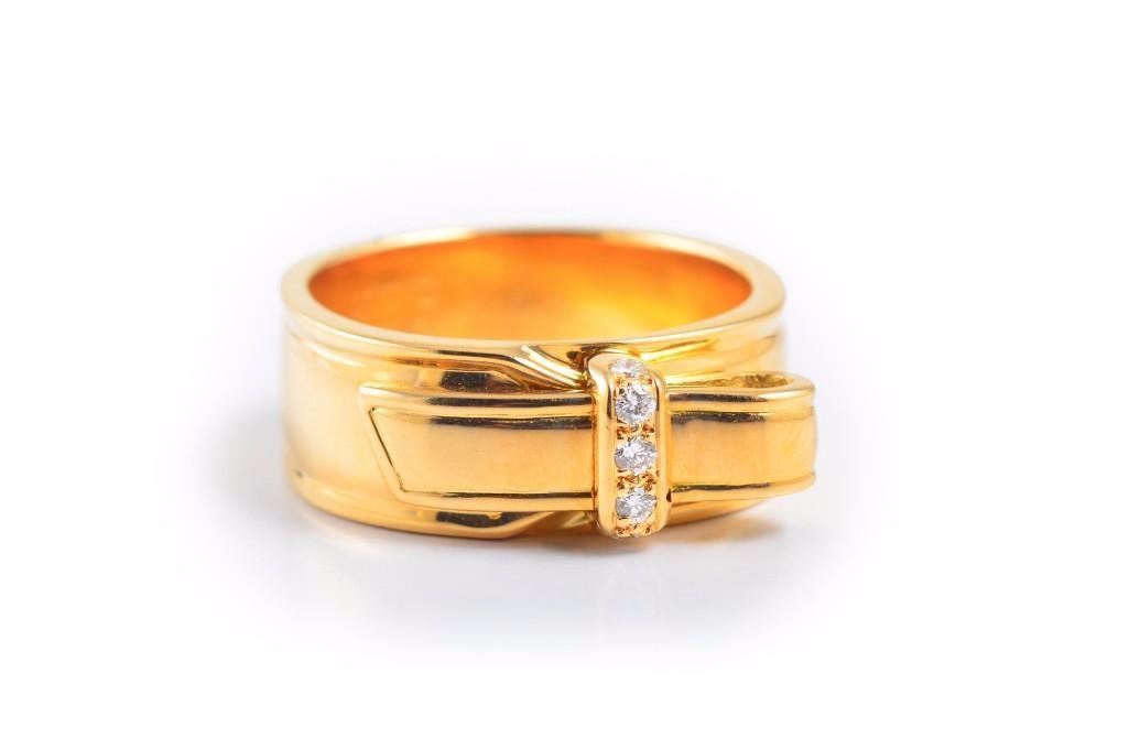 Set with 5 circular-cut diamonds weighing approximately 0.07 carat; signed Hermes 50 750 69621; ring size 5; weight 9.2g.
