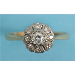 A Gold and Nine Stone Diamond Cluster Ring £150 - 200
