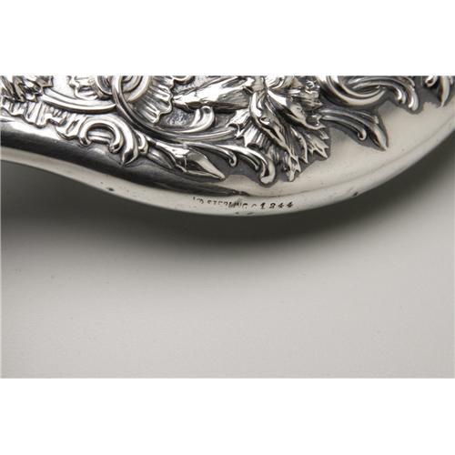 <B>An American Silver Hand Mirror</B></I><BR><B>Gorham, Providence, RI, Early Twentieth Century</B></I><BR><BR>Script monogram to the reverse <I>BL,</B></I> hallmark to the side with <I>STERLING 1244</B></I><BR>8.6in. long x 4.6in. wide <BR><BR><B>Important notice:<