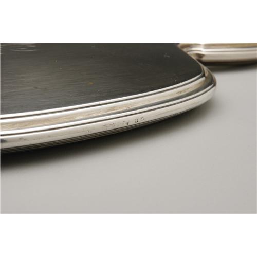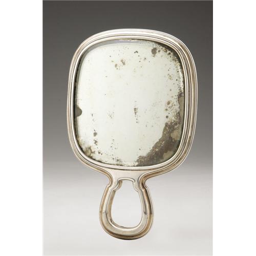 <B>An American Silver Hand Mirror</B></I><BR><B>Gorham, Providence, RI, Early Twentieth Century</B></I><BR><BR>Script monogram to the reverse <I>RPS,</B></I> marked on the side <I>GORHAM STERLING B3</B></I><BR>7.6in. long x 4.9in. wide1 Items <BR><BR><B>Condition Report:</B> Normal signs of wear as appropriate with age; the silver backing on the glass is deteriorated; two chips to the corner of the glass. <BR><BR><B>Important notice:<