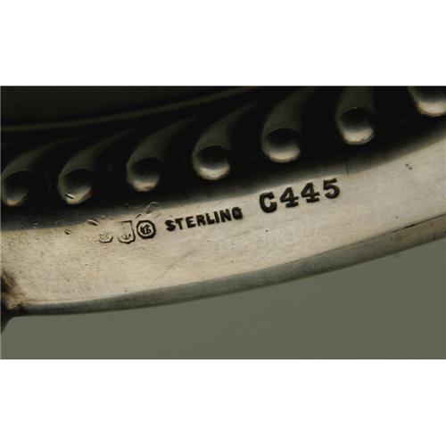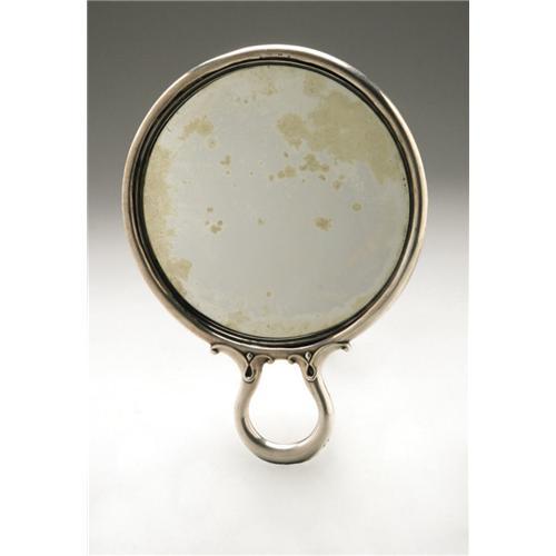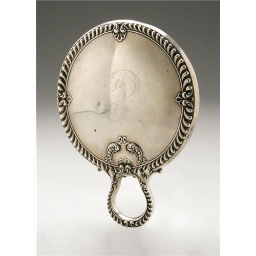 <B>An American Silver Hand Mirror</B></I><BR><B>Gorham, Providence, RI, Early Twentieth Century</B></I><BR><BR>Monogram to the reverse <I>P,</B></I> hallmark to the side with <I>STERLING C445</B></I><BR>7.8in. long x 5.8in. wide1 Items <BR><BR><B>Condition Report:</B> Normal signs of wear as appropriate with age; the silver backing on the glass is deteriorated. <BR><BR><B>Important notice:<