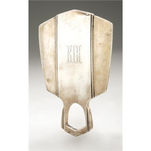 <B>An American Silver Hand Mirror</B></I><BR><B>Gorham, Providence, RI, Early Twentieth Century</B></I><BR><BR>Monogram to the reverse <I>EIS,</B></I> marked on the side <I>GORHAM STERLING B7</B></I><BR>7.7in. long x 7.8in. wide <BR><BR><B>Important notice:<