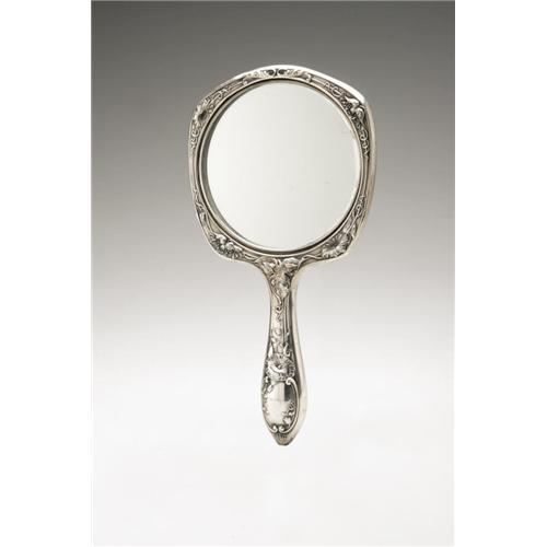 <B>An American Silver Hand Mirror</B></I><BR><B>Gorham, Providence, RI, Early Twentieth Century</B></I><BR><BR>Monogram to the reverse <I>EMS,</B></I> hallmark to the side with <I>STERLING/C972</B></I><BR>9.1in. long x 4.7in. wide <BR><BR><B>Important notice:<