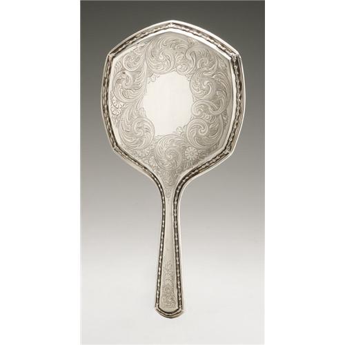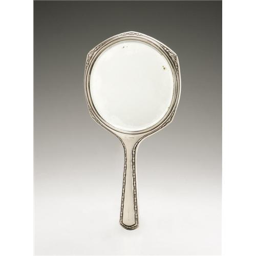 <B>An American Silver Hand Mirror</B></I><BR><B>Gorham, Providence, RI, 1919</B></I><BR><BR>Monogram to the reverse <I>GB,</B></I> hallmark to the handle with <I>STERLING/C7500 PAT.1919</B></I><BR>13in. long x 4.6in. wide <BR><BR><B>Important notice:<