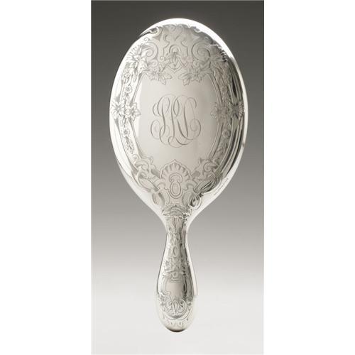 <B>An American Silver Hand Mirror</B></I><BR><B>Gorham, Providence, RI, Early Twentieth Century</B></I><BR><BR>Script monogram to the reverse <I>SRL,</B></I> hallmark to the side with <I>STERLING C1615</B></I><BR>12.2in. long x 5.5in. wide1 Items <BR><BR><B>Condition Report:</B> Normal signs of wear as appropriate with age; very minor dents to the handle. <BR><BR><B>Important notice:<