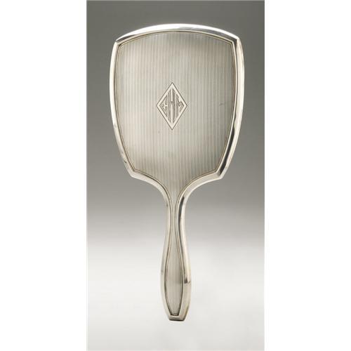 <B>An American Silver Hand Mirror</B></I><BR><B>Gorham, Providence, RI, 1917</B></I><BR><BR>Monogram to the reverse <I>EHM,</B></I> hallmark to the side with <I>STERLING 1-25C</B></I><BR>11.7in. long x 5.6in. wide <BR><BR><B>Important notice:<