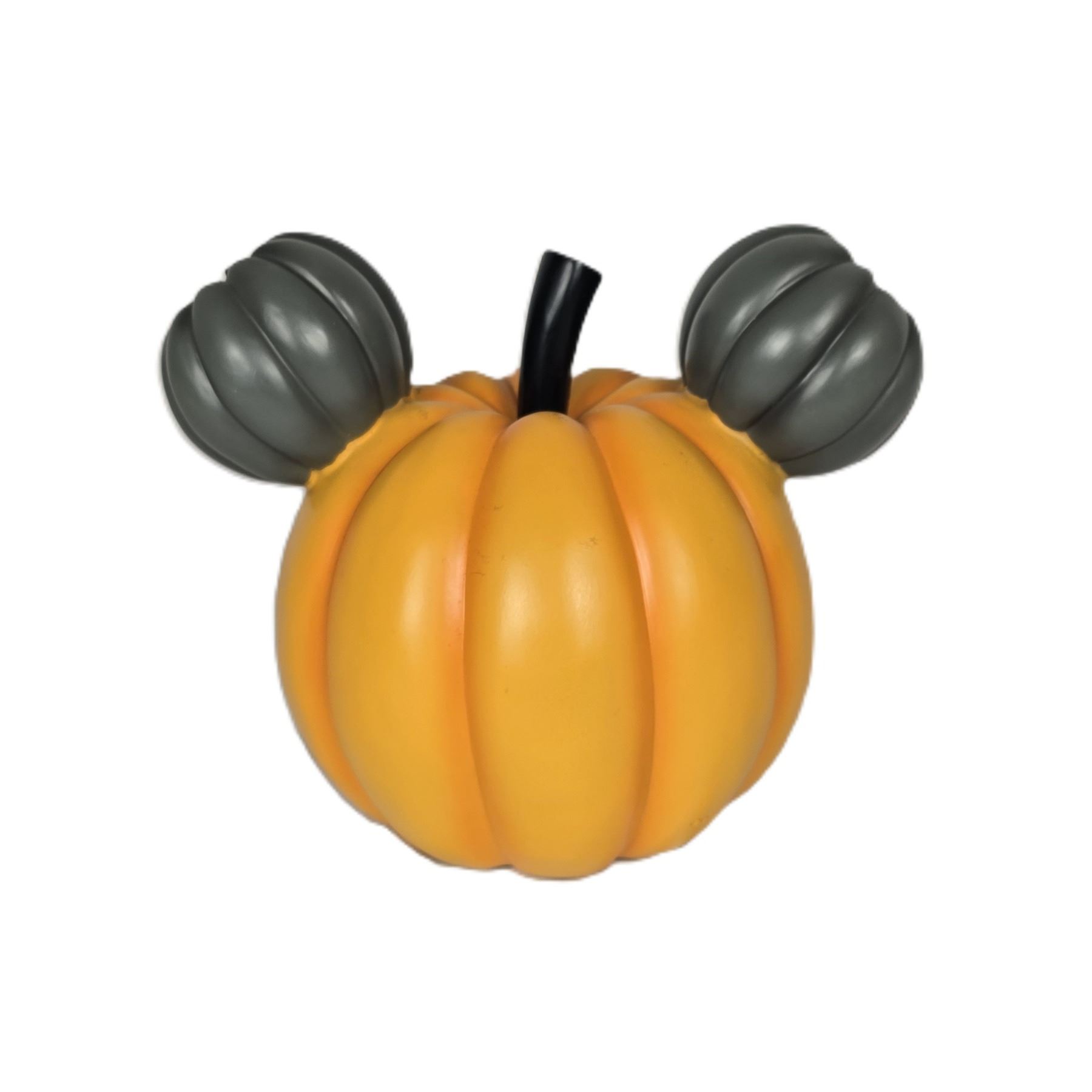 (Disney/Kohls) This is a Celebrate Together Halloween decorative accent. It has grey pumpkin ears and a painted face resembling Mickey Mouse. It measures 8.5” x 7” x 7” and weighs 1 lb. 7 oz.