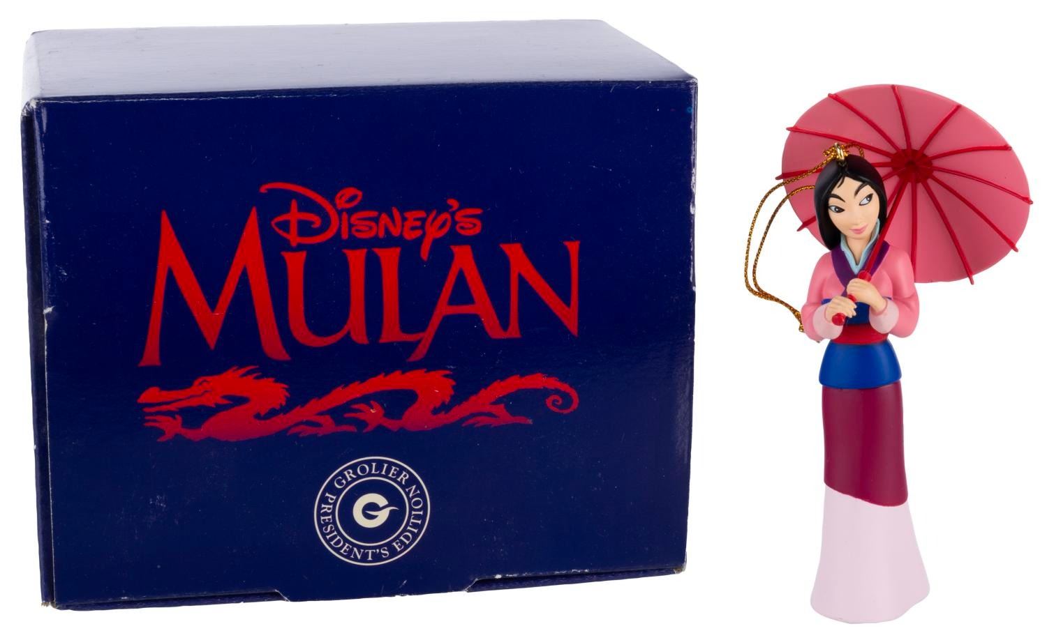 (Grolier, 1990s) An ornament of Fa Mulan as she appears in the beginning of the film. Standing 4.5" tall, the ornament is in fine condition with the original good condition box.