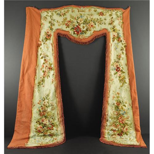 <B>A Group of Aubusson Curtains</B></I><BR><BR>Unknown maker, French<BR>Nineteenth Century<BR>Silk, wool<BR>111 inches by 89 inches; 111 inches x 73.5 inches; 111 inches x 75 inches<BR><BR>Three curtains with rose background and French floral motif. <B>Condition Report:</B> Overall good condition with normal signs of wear as appropriate with age<BR><BR><b>Shipping:</b> Requires 3rd Party Shipping (<a target="_blank" href="http://www.heritageauctions.com/common/shipping.php">view shipping information</a>) <BR><BR><B>Important notice: