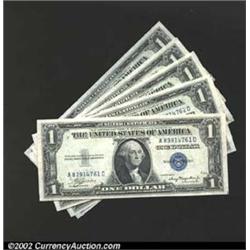 A Group of Five Consecutively Serial Numbered 1935A $1 Silver Certificates, Fr-1608, all grading Cho
