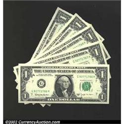 A Group of Five Consecutively Serial Numbered 1963-B $1 Federal Reserve Notes, Fr-1902-G, all grading Gem CU. 5 notes