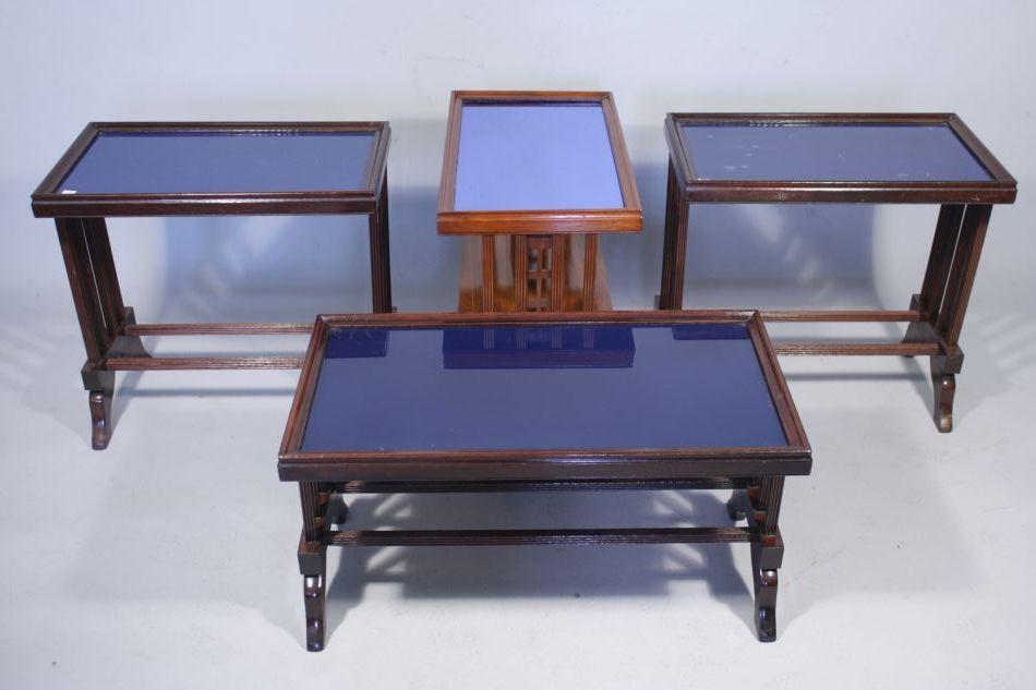 A Group of Four Art Deco Coffee Tables with Blue Tops.