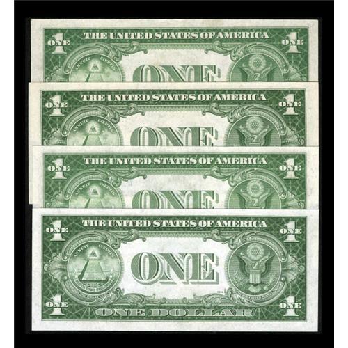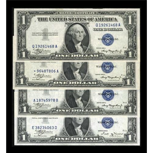 <B>A Group of Four Early $1 Silver Certificates. Choice Crisp Uncirculated or Better.</B></I><BR> This near gem quality quartet of $1 Silvers includes one 1935A Mule, one 1935A star, one 1935A, and one 1935B.<BR><I>From The Thomas M. Flynn Collection</B></I><BR><BR><b>Shipping:</b> Coins & Currency (<a target="_blank" href="http://www.heritageauctions.com/common/shipping.php">view shipping information</a>)
