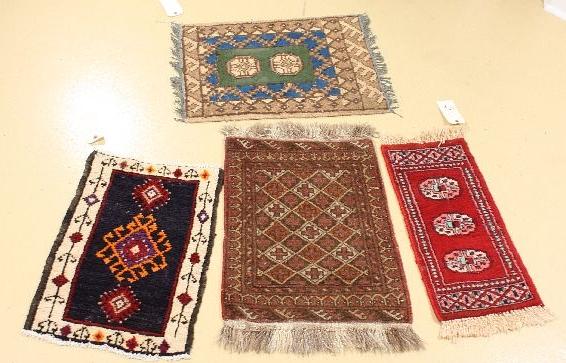 A Group of Four Persian Turkoman and Kurd Wool Rugs. 1 ft 7 in x 2 ft 2 in each