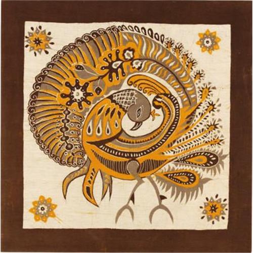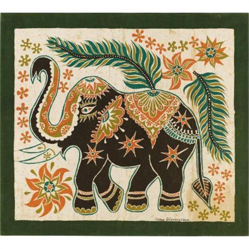 <B>A Group of Four Sri Lankan Batik Panels<BR></B></I>Workshop of Ena de Silva, Colombo, Sri Lanka<BR>Circa 1980-1985<BR>Cotton<BR>Various signatures<BR>Various sizes (see description)<BR> <BR>The batik panels mounted on stretchers including one depicting a brown elephant on cream ground with orange and green flowers and foliage measuring 28.25 inches high x 31 inches wide; one depicting a gray and orange bird with plumage on cream ground measuring 31.5 inches high x 30.75 inches wide; one depicting a purple and gold mythical lion on cream ground measuring 34.25 inches high x 44.5 inches wide; and one depicting orange, brown and white butterflies on a gray ground measuring 39.5 inches high x 44 inches wide.<BR><BR><b>Shipping:</b> Requires 3rd Party Shipping (<a target="_blank" href="http://www.heritageauctions.com/common/shipping.php">view shipping information</a>)