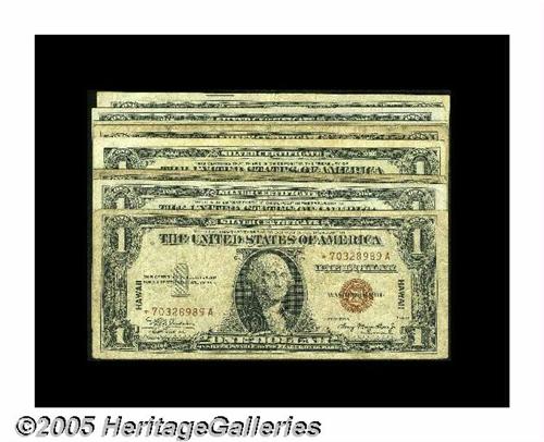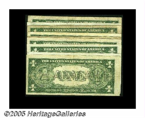 <B>A Group of Fr. 2300 $1 Hawaii Federal Reserve Notes</B></I><BR>Included are blocks *A, FIne; block ZB, EF; block AC, VG; block CC, VF; block FC, Fine; block LC, VF with light stains; block PC, VF; block SC, EF; block YC VF.<BR>The FC block is quite scarce, with only 12,000 notes printed.