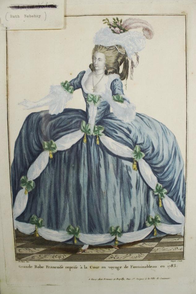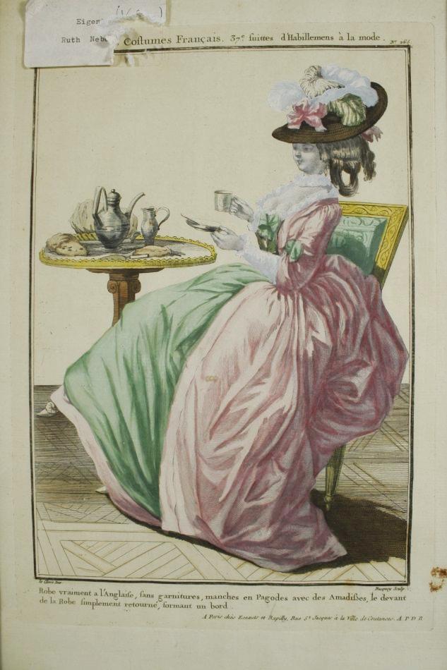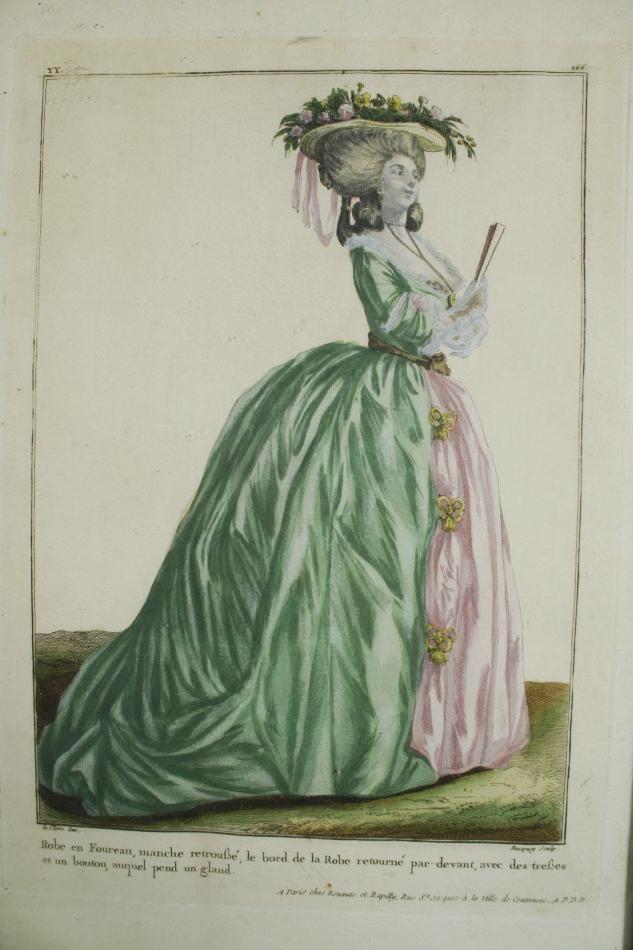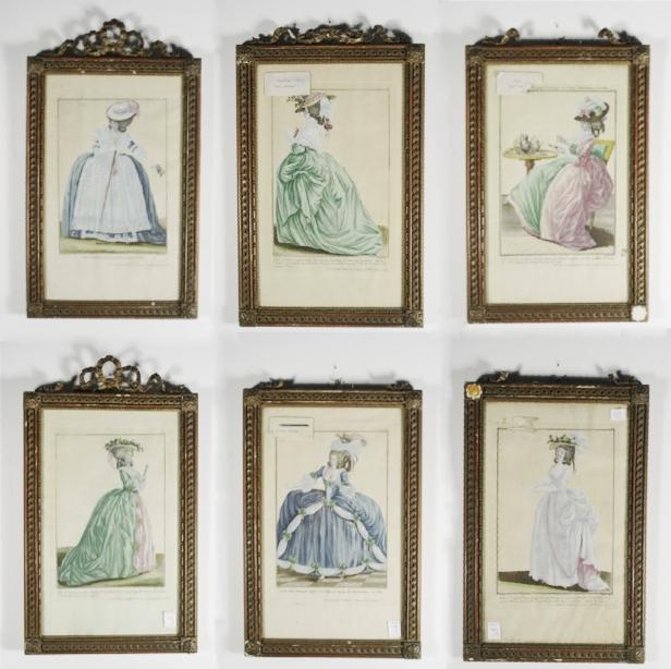 A Group of Six 18th Century French School Colored Engravings of Costume Illustrations.
