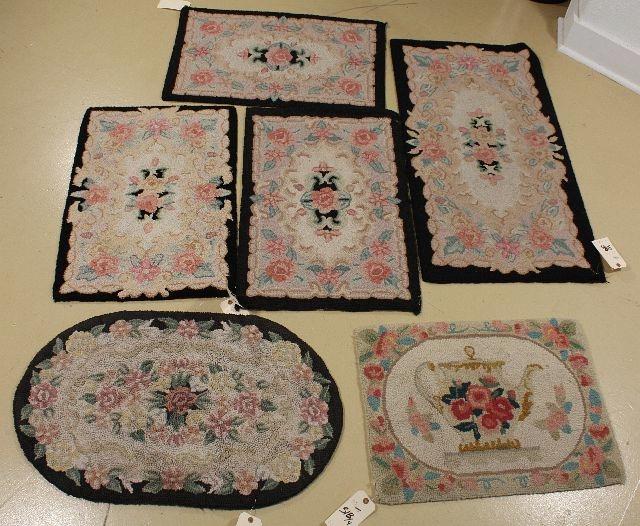 A Group of Six Hook Wool Rugs. 1 ft 8 in x 2 ft 7 in each
