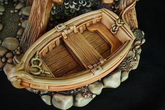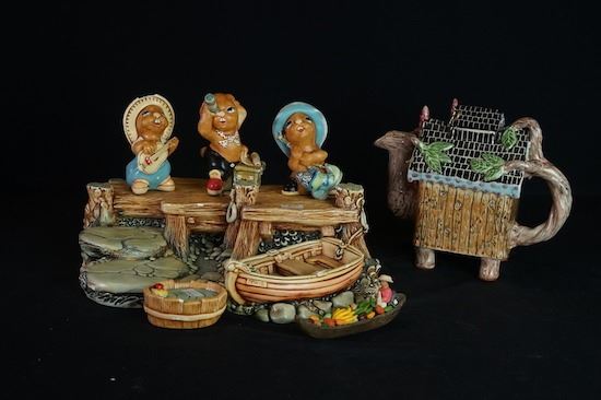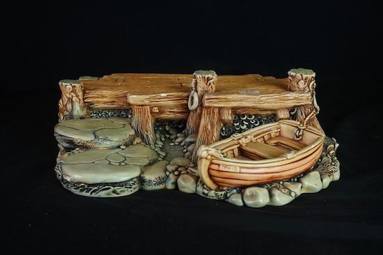 Small crack on on of the decoration. Condition as is, shown in photos. H:11cm, 11cm, 11cm, 3cm, 4.5cm, 19cm; Dock Size: 32cm*19cm*8cm;